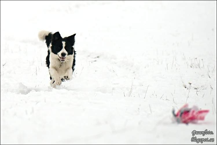 Trénink se tentokrát konal v Brně Soběšicích. Charlik byl nervozní jen co vyděl čtyřkolku a naviják. Pro splnění licence, na kterou se chystáme jsou potřeba 3 solo běhy a 3 párové. Solo už si odběhnul. A tentokrát poprvé si Charli zkusil párový běh. Bála jsem se aby se více nezajímal o psa než o střapec ale Charli se nedal byl fixovaný na střapec a běžel i přes klouzavý sníh bezvadně až do cíle. Bylo moc fajn před druhým během dorazila naše kamarádka borderka Sally s paničkami a tak než jsme se nadáli Charli už byl na řadě na druhý běh :-)