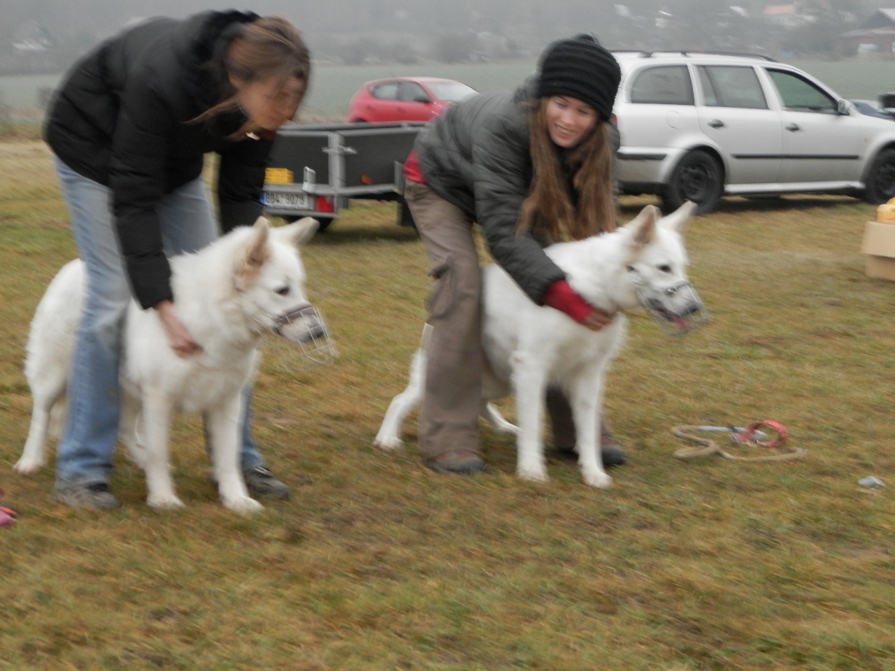 Charlik jako profi si zaběhl jen tak pro radost a Sabinka si poprvé vyzkoušela párový běh s cizím pejskem, kterým byla krásná fenečka také Bílého Švýcarského ovčáka Bina od Sněhobílé krásky.