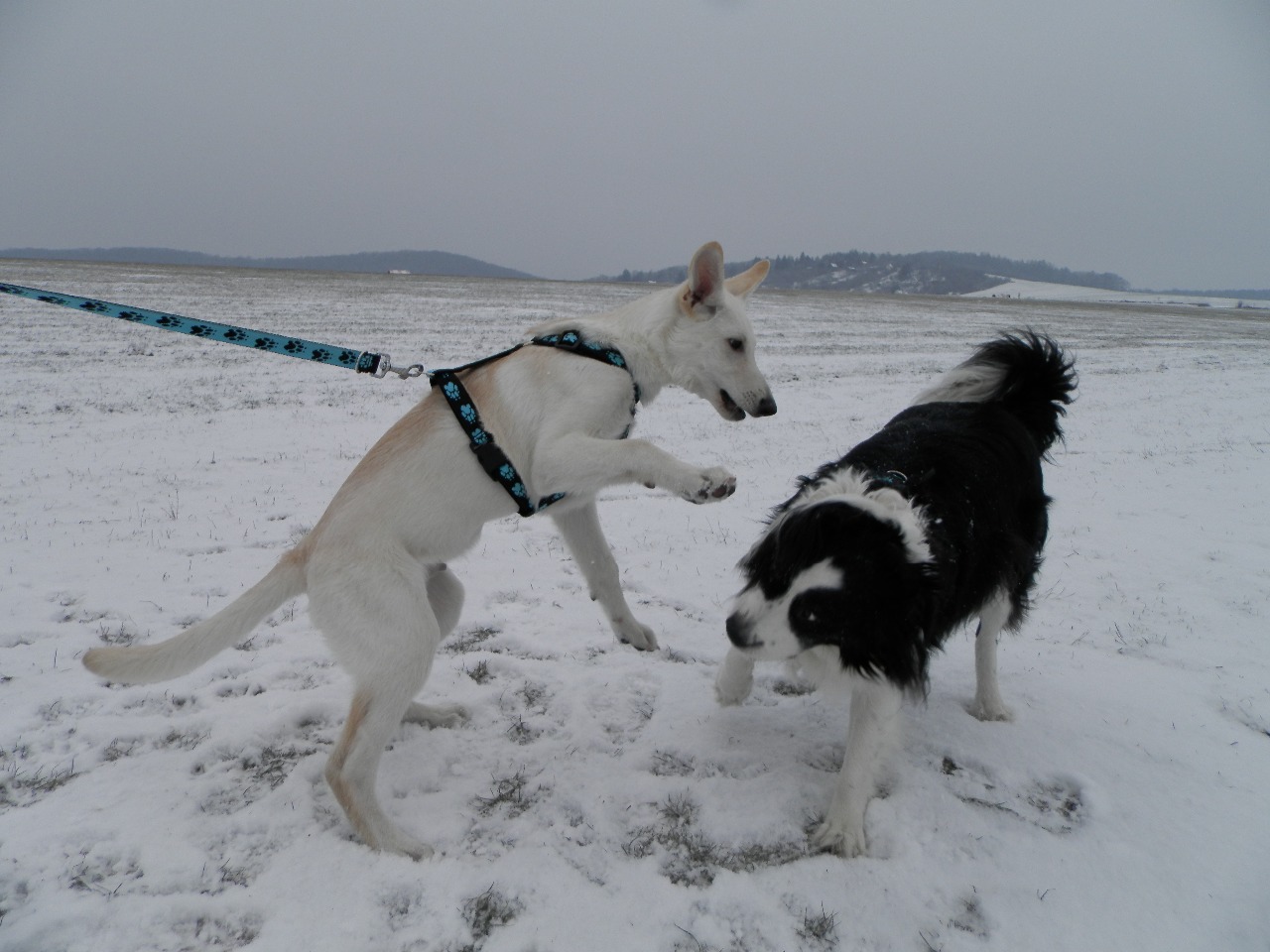 Tento trénink se konal na letišti v Brně Medlánkách. Bylo nádherně napadl nám sníh, tak že zimní atmosféra byla naprosto dokonalá. Po novoročním přípitku a výborných chlebíčcích za které moc děkujeme, se začalo běhat. Dlouho jsme nečekali a chlupáči si to užili. Charlik si zaběhal a Archi si užíval první sníh :-)