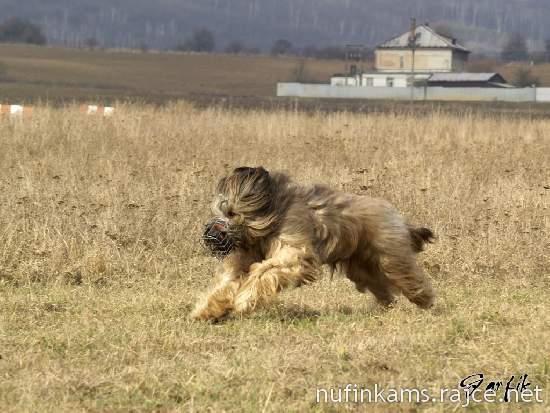 Bafíčkovi do kožichu, tudíž na koni cesty nepřipomínal briarda ale zmoklý smeták. Nic méně bylo vidět že je šťastný a na akci se těší. Během